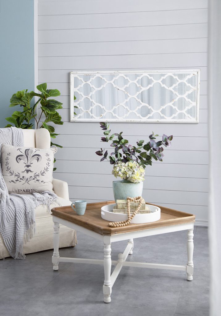 The Southern Living Collection offers this square Alcott Coffee Table featuring an aged white base and natural wood top. With a raised frame surrounding its tray-style top, the Alcott Table offers a protected space to display treasures or serve food and drinks. The casual design and distressed finish give this table a charming versatility to fit a variety of spaces.